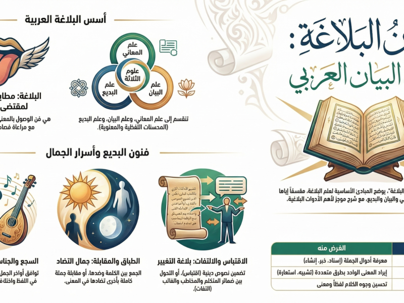 يُعد كتاب “لسان البلاغة” للدكتور هاني إسماعيل رمضان مرجعاً تعليمياً حديثاً يهدف إلى تيسير علوم اللغة العربية للناطقين بغيرها وللطلاب المبتدئين. يركز المحتوى على الأقسام الثلاثة الرئيسية للبلاغة، وهي علم البديع وعلم البيان وعلم المعاني، مع تقديمها بأسلوب منهجي يعتمد على النصوص الكاملة بدلاً من الأمثلة المجتزأة. يعتمد الكتاب في تدريباته المكثفة على القرآن الكريم والحديث الشريف لإبراز جماليات اللغة وتنمية الذوق الأدبي لدى المتعلم. يشتمل العمل على دروس مفصلة تتناول فنوناً محددة مثل السجع والجناس والاقتباس، مدعومة بوسائل إيضاحية لتسهيل استيعاب القواعد. وبذلك يمثل هذا المصدر أداة شاملة تجمع بين التأصيل النظري والتطبيق العملي لإتقان مهارات التعبير العربي الرصين.